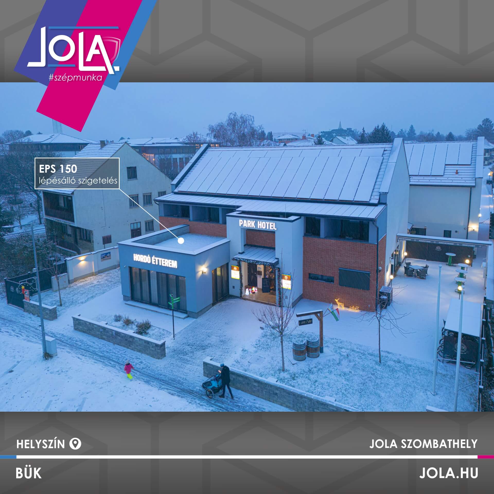 Lapostetők szigetelésénél EPS 150 ipari lépésálló szigetelést rögzítettünk a fogadó felületre, majd SIKA időjárásálló fóliával burkoltuk. Erre a felületre került aztán esztétikai megoldásként 12-16mm-es folyami mosott kavics.