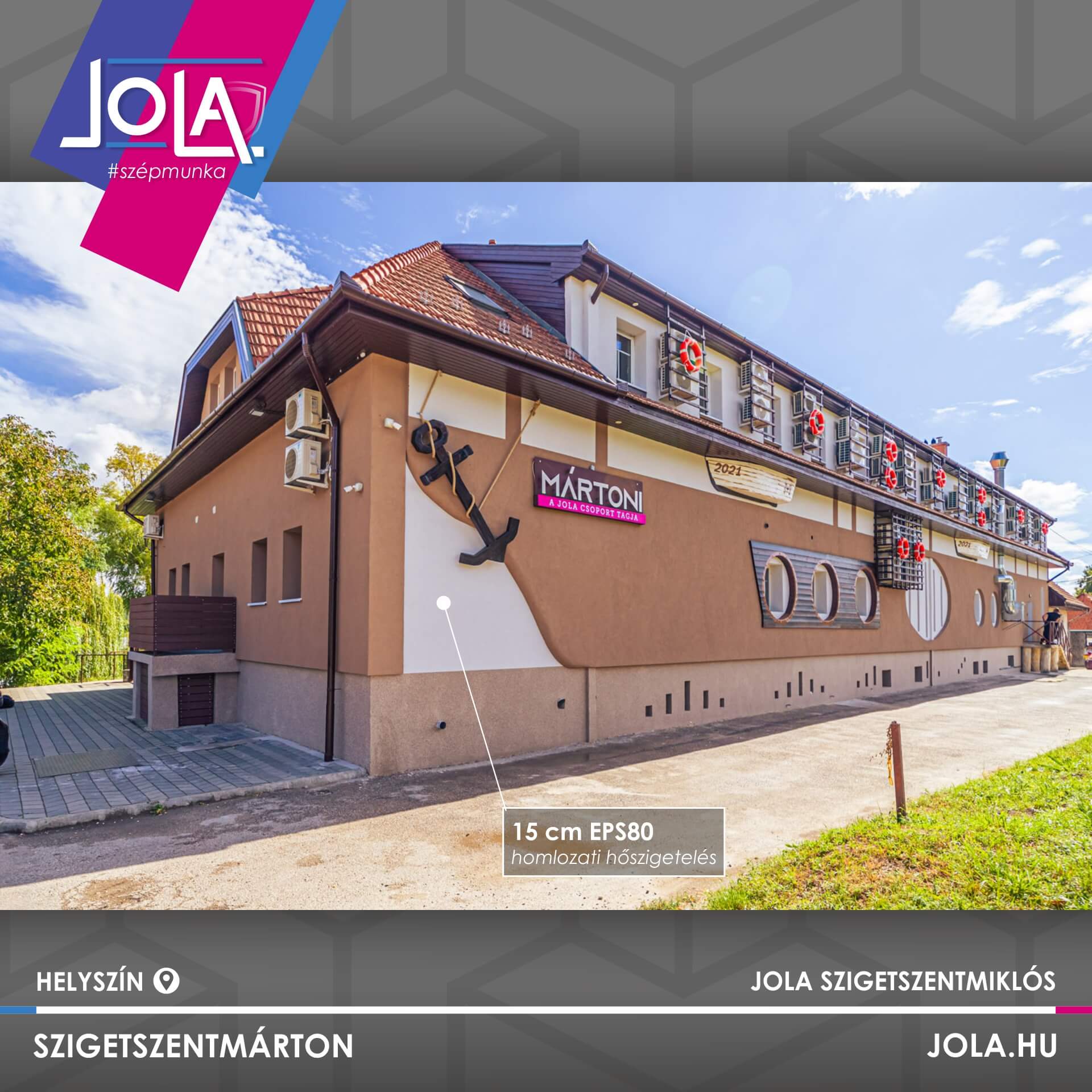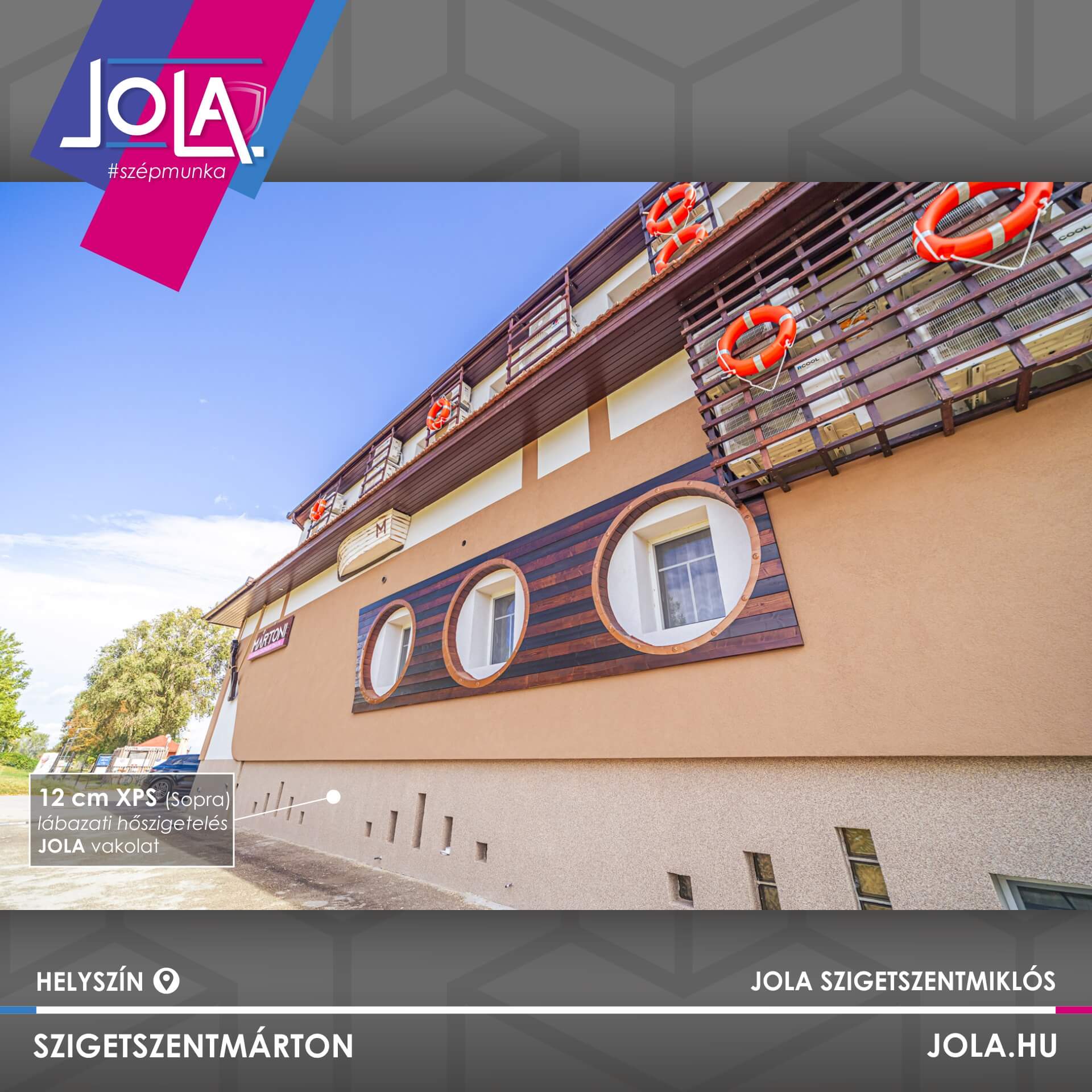 A JOLA csoport legszebb fekvésű ingatlanában Horváth Kristóf termékmenedzser vezette a felújítási munkálatokat, melyen a vízpart közelsége miatt specifikus anyagokat kellett használnunk: