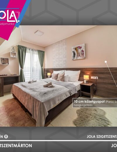 Az épületen belül válaszfali gipszkarton szerkezetek közé használtunk még kiváló hangszigetelést biztosító táblásított kőzetgyapotokat (Paroc Solid 037 lambdájú, 10 cm vastagságban).